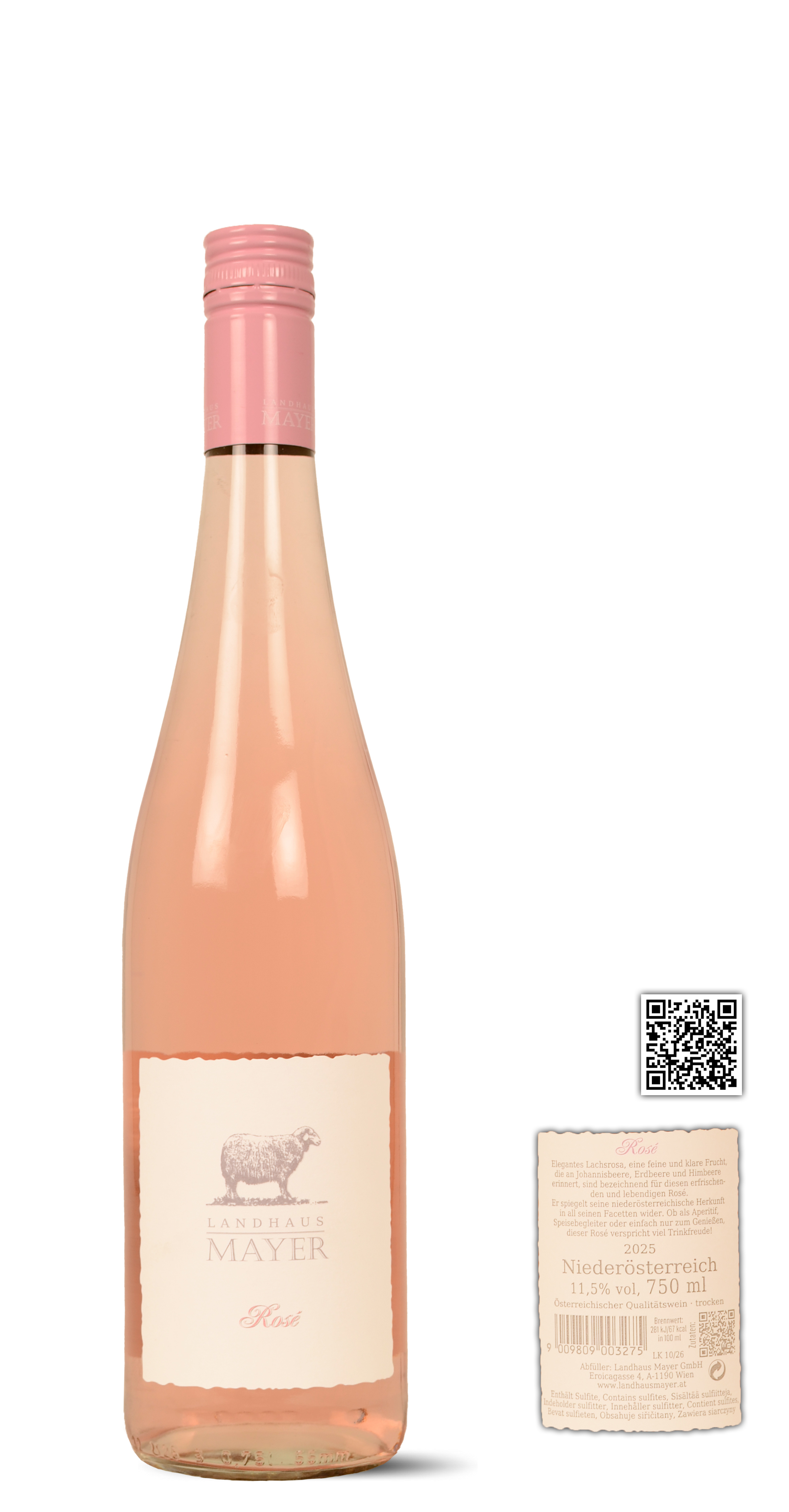 80% Zweigelt en 20% Cabernet Sauvignon. Mooie lichte zalmkleur. Delicate neus van framboosjes, een vleugje aardbei en hints van citrus. Frisse en levendige smaak die krokant en licht uitdrogend nazindert. Makkelijke, vlotte stijl die lekker weg drinkt.